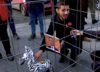 ოპოზიციის აქტივისტებმა რესპუბლიკის მოედანზე გალია დადგეს და სათამაშო ზებრა ჯაჭვით მიაბეს