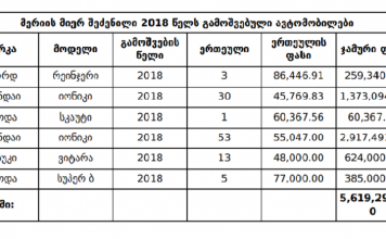 IDFI: მერიას 370 ავტომობილი ეკუთვნის, მათგან 2018 წელს გამოშვებული 105 მანქანის შეძენაზე 5.6 მლნ დაიხარჯა