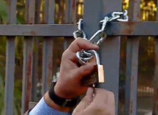 აქციის მონაწილეებმა მთავრობის ადმინისტრაციის ღობეს სიმბოლურად ბოქლომი დაადეს