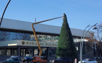 თელავში დაზიანებული ნაძვის ხის აღდგენითი სამუშაოები მიმდინარეობს