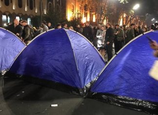 რუსთაველზე, პარლამეტთან კარვები გაშალეს