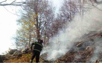 გურიაში, სოფელ მამათის მიმდებარედ ტყის საფარი იწვის
