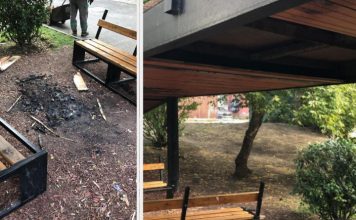 გლდანის ერთ-ერთ სკვერში სკამს ფიცრები მოტეხეს და ცეცხლი დაანთეს