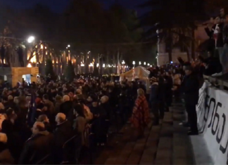 პარლამენტის წინ აქცია, დაშლის მიუხედავად, მაინც გრძელდება