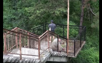 ბორჯომში ნახევრად დანგრეულ ხიდს, გამაგრების ნაცვლად, ღებავენ