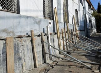 ნაძალადევის რაიონში მანჯგალაძის ქუჩაზე ავარიულ საცხოვრებელ შენობას ამაგრებენ