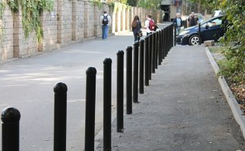 დიდუბის რაიონში უსაფრთხოების მოაჯირებსა და ბოძკინტებს ამონტაჟებენ