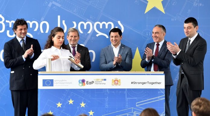 "მშენებლობის ადგილას, დღეს, სიმბოლური კაფსულა საქართველოს პრემიერმინისტრმა გიორგი გახარიამ, ევროპული სამეზობლო პოლიტიკისა და გაფართოების საკითხებში ევროკომისარმა იოჰანეს ჰანმა, განათლების, მეცნიერების, კულტურისა და სპორტის მინისტრმა მიხეილ ბატიაშვილმა და თბილისის მერმა...