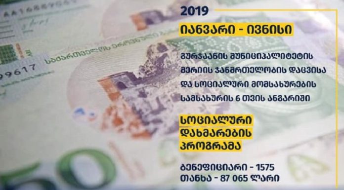 ახმეტის მუნიციპალიტეტის მერიაში აცხადებენ, რომ ჯანდაცვისა და სოციალურ საკითხთა სამსახურის პროგრამის ფარგლებში 2019 წლის ივლისში 32 236 ლარი დაიხარჯა.