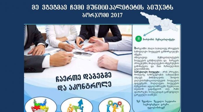 ბორჯომის მუნიციპალიტეტი ახალი საპილოტე პროექტის - "სამოქალაქო ბიუჯეტის" განხორციელებას იწყებს. ინფორმაციას ბორჯომის გამგეობა ავრცელებს.