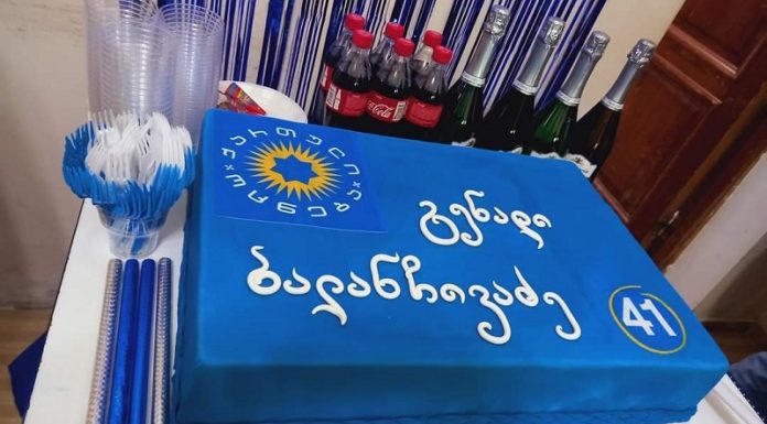 წყალტუბოში “ოცნებამ” კანდიდატის გამარჯვება პარტიულ ფერებში გაფორმებული ტორტით და ფოიერვერკით აღნიშნა