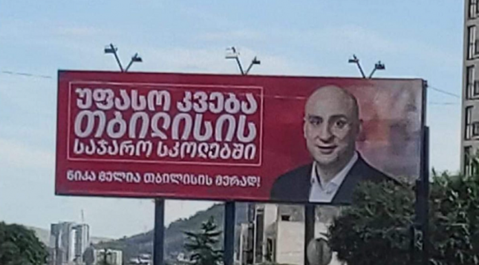 2021 წლის ადგილობრივი თვითმმართველობის არჩევნების II ტურამდე ორი კვირით ადრე დედაქალაქის ქუჩებში ახალი სარეკლამო ბანერები გამოჩნდა, რომელზეც ერთიანი ნაციონალური მოძრაობის მერობის კანდიდატის, ნიკა მელიას წინასაარჩევნო დაპირებაა გამოსახული – "უფასო კვება თბილისის საჯარო სკოლებში". ინფორმაციას ტაბულა ავრცელებს.